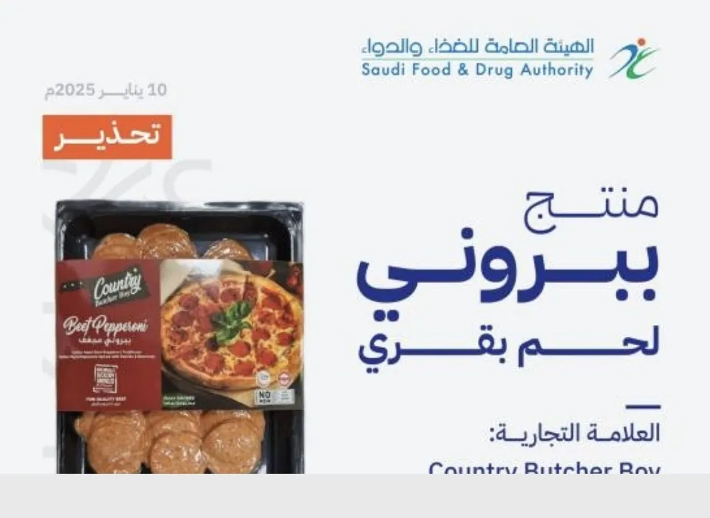 حذّرت الهيئة العامة للغذاء والدواء من منتج ببروني وهو عبارة عن لحم بقري مجفف للعلامة التجارية (Country Butcher Boy)، «بلد المنشأ دولة الإمارات العربية المتحدة»، معبأ في عبوات بوزن 250 جراما، ويحمل تاريخ صلاحية حتى 1 / 3... المزيد